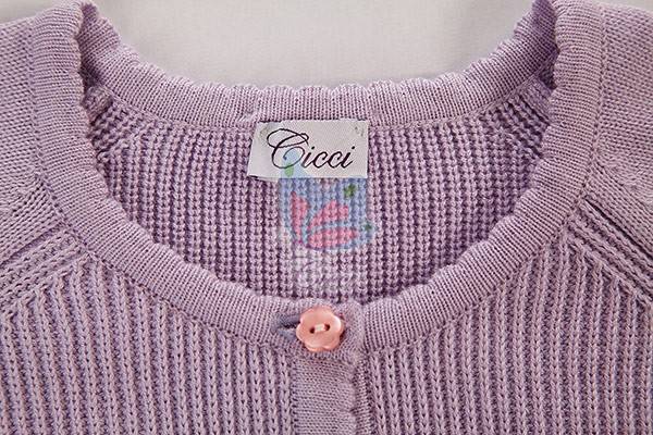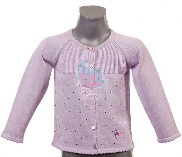 produs cu maneca raglan, model cu gaurele si dungulite verticale din tricot, calduros deoarece imbraca foarte bine corpul fetitelor . are nasturi multicolori,broderia logo CICCI.