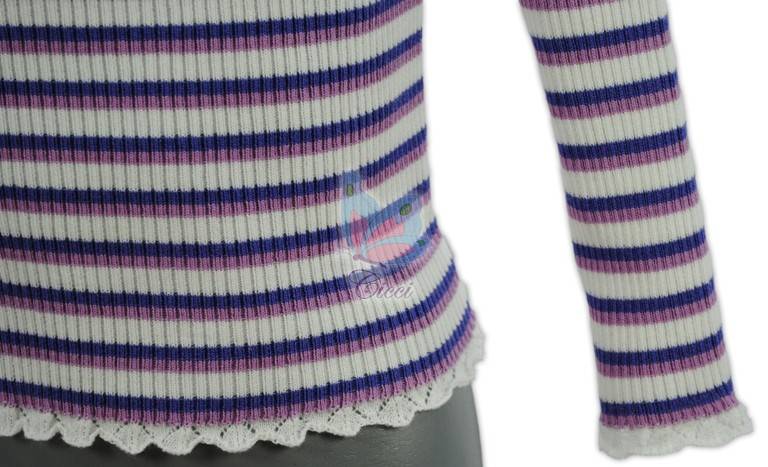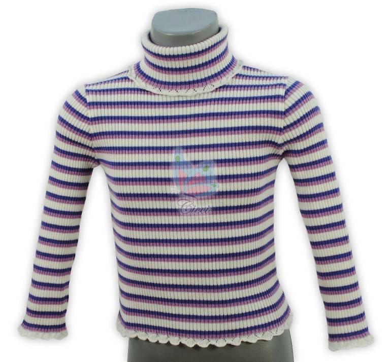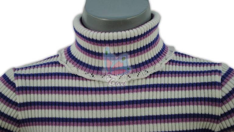pulovar tricotat in structura elastica, se adapteaza usor oricarui tip de corp; guler inalt pentru a proteja gatul micutelor purtatoare marginute dantelate la inceput corp, maneci si guler.