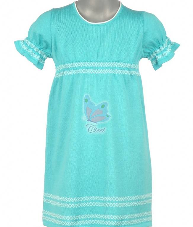 rochie din tricot fin, model etnic, cu zone jaquard elastice in zona bustului si la manecute ce confera libertate absoluta de miscare micilor purtatoare