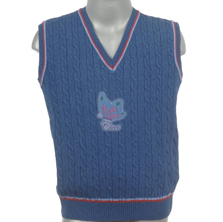 vesta tricotata, cu torsade, din fir preponderent lana.
